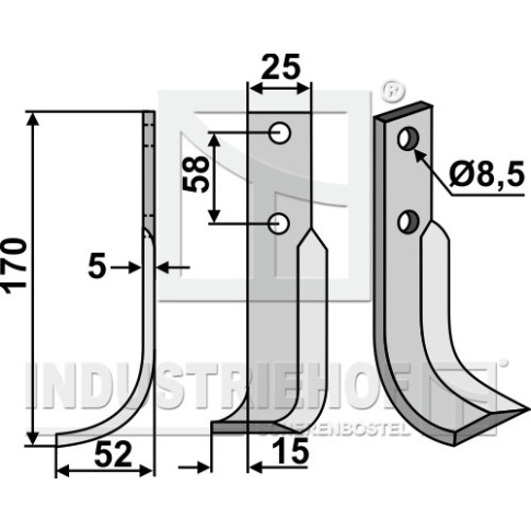 Grubość:5 Długość:170 Odstęp pomiędzy otworami:58 Szerokość:25 Otwór:8,5