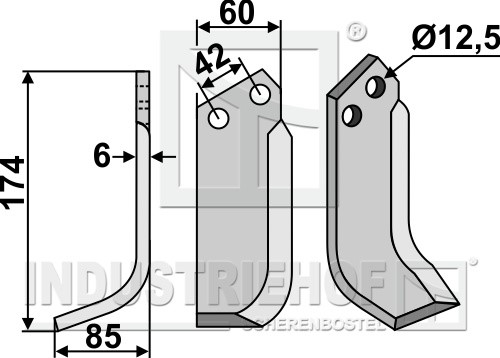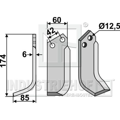 Grubość:6 Długość:174 Odstęp pomiędzy otworami:42 Szerokość:60 Otwór:12,5