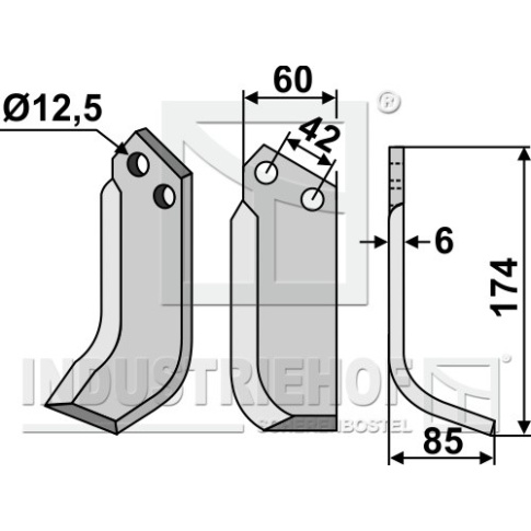 Grubość:6 Długość:174 Odstęp pomiędzy otworami:42 Szerokość:60 Otwór:12,5