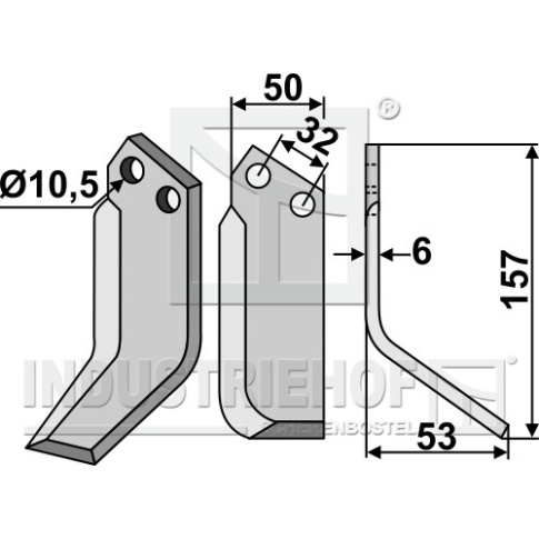 Grubość:6 Długość:157 Odstęp pomiędzy otworami:32 Szerokość:50 Otwór:10,5