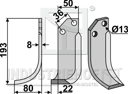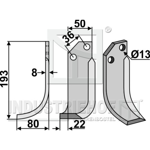 Grubość:8 Długość:193 Odstęp pomiędzy otworami:36 Szerokość:50 Otwór:13