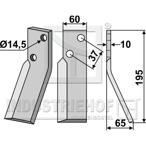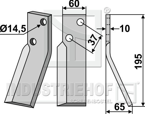 Grubość:10 Długość:195 Odstęp pomiędzy otworami:37 Szerokość:60 Otwór:14,5