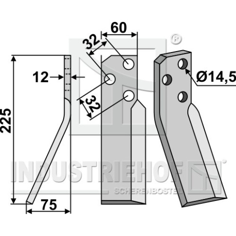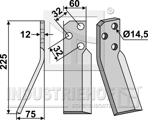 Grubość:12 Długość:225 Odstęp pomiędzy otworami:32 Szerokość:60 Otwór:14,5