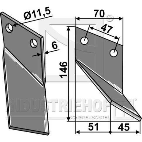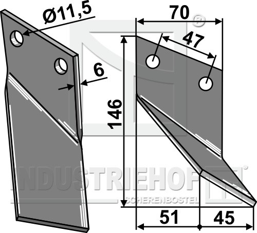Grubość:6 Długość:146 Odstęp pomiędzy otworami:47 Szerokość:70 Otwór:11,5