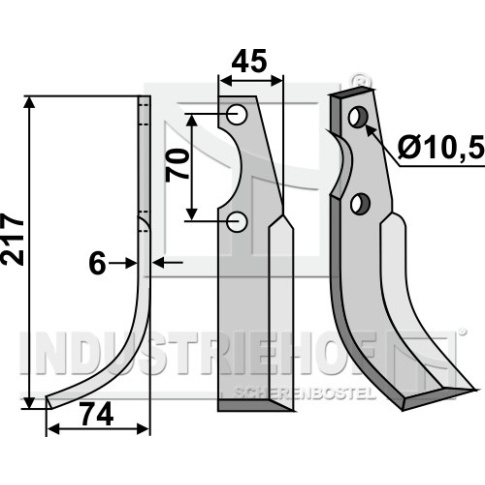 Grubość:6 Długość:217 Odstęp pomiędzy otworami:70 Szerokość:45 Otwór:10,5