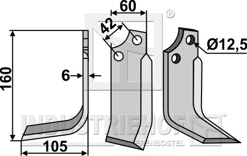 Grubość:6 Długość:160 Odstęp pomiędzy otworami:42 Szerokość:60 Otwór:12,5