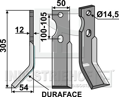 Grubość:12 Długość:305 Odstęp pomiędzy otworami:100-105 Szerokość:50 Otwór:14,5