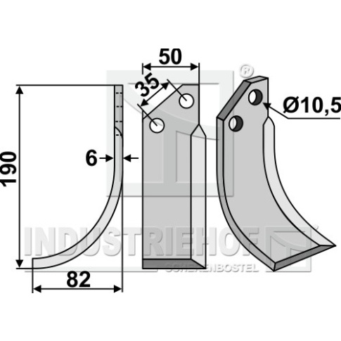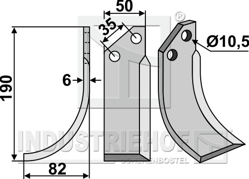 Grubość:6 Długość:190 Odstęp pomiędzy otworami:35 Szerokość:50 Otwór:10,5