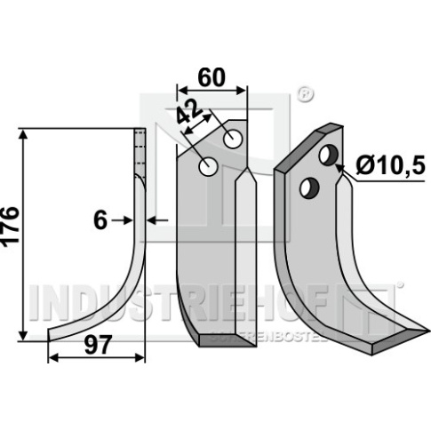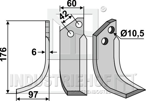 Grubość:6 Długość:176 Odstęp pomiędzy otworami:42 Szerokość:60 Otwór:10,5