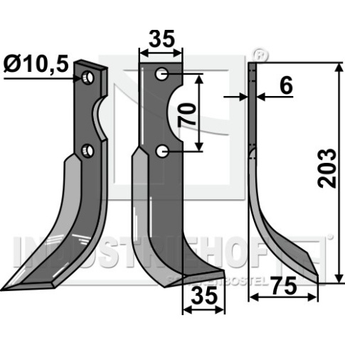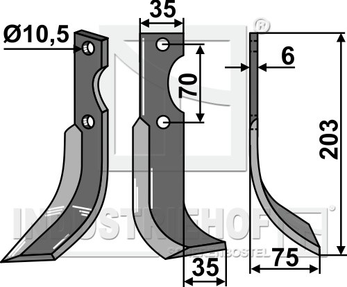 Grubość:6 Długość:203 Odstęp pomiędzy otworami:70 Szerokość:35 Otwór:10,5