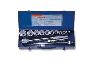 Nasadki wykonane ze stali chromowo-wanadowej Cały komplet umieszczony w metalowej kasecie W zestawie: 1 sztuka - grzechotka 3/4" 1 sztuka - pokrętło z przetyczką 3/4" 1 sztuka - przedłużka L-100 mm 1 sztuka - przedłużka L-200 mm 10 sztuk - klucze nasadowe sześciokątne: 22, 24, 27, 30, 32, 36, 38, 41, 46, 50 mm